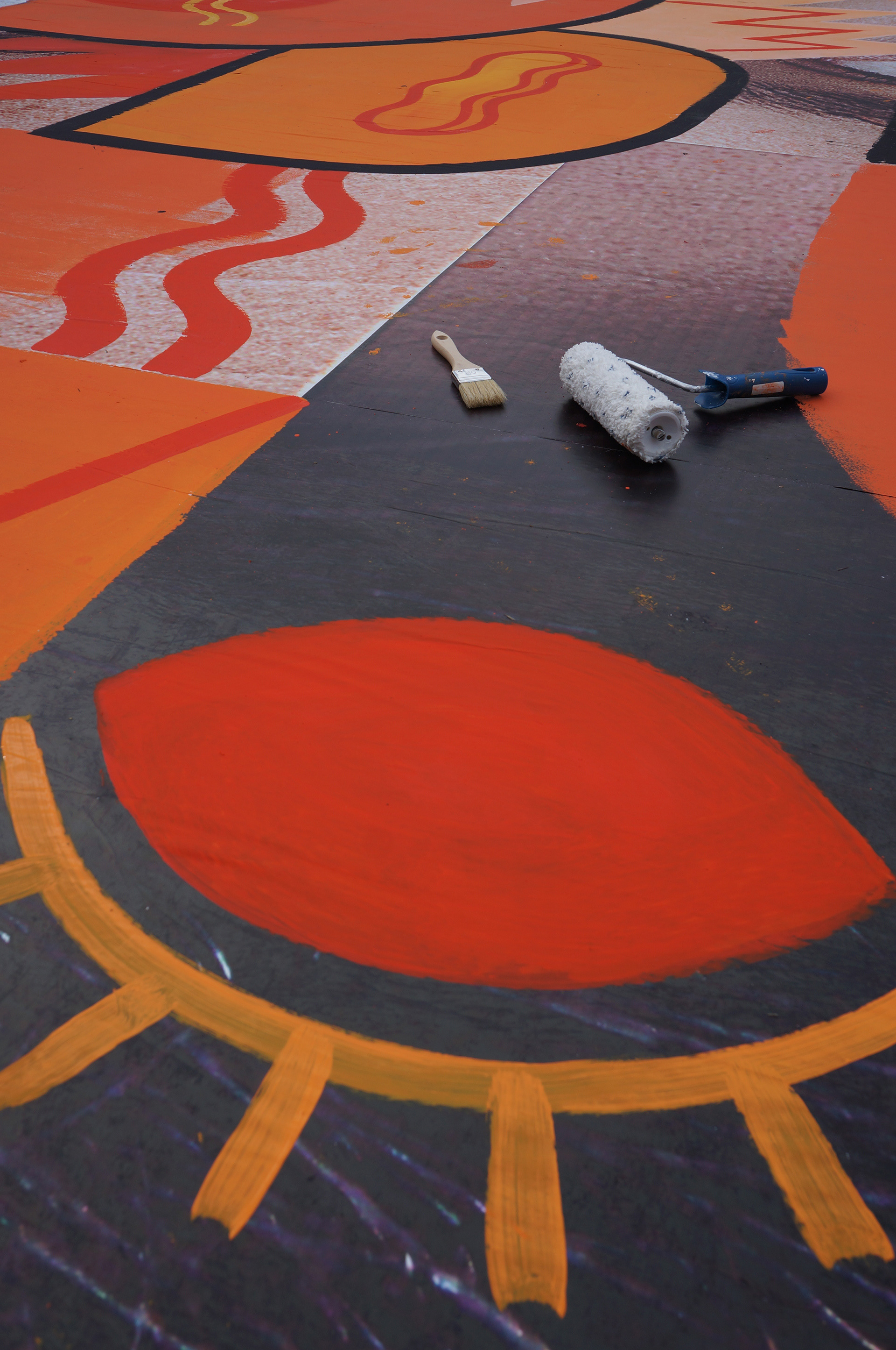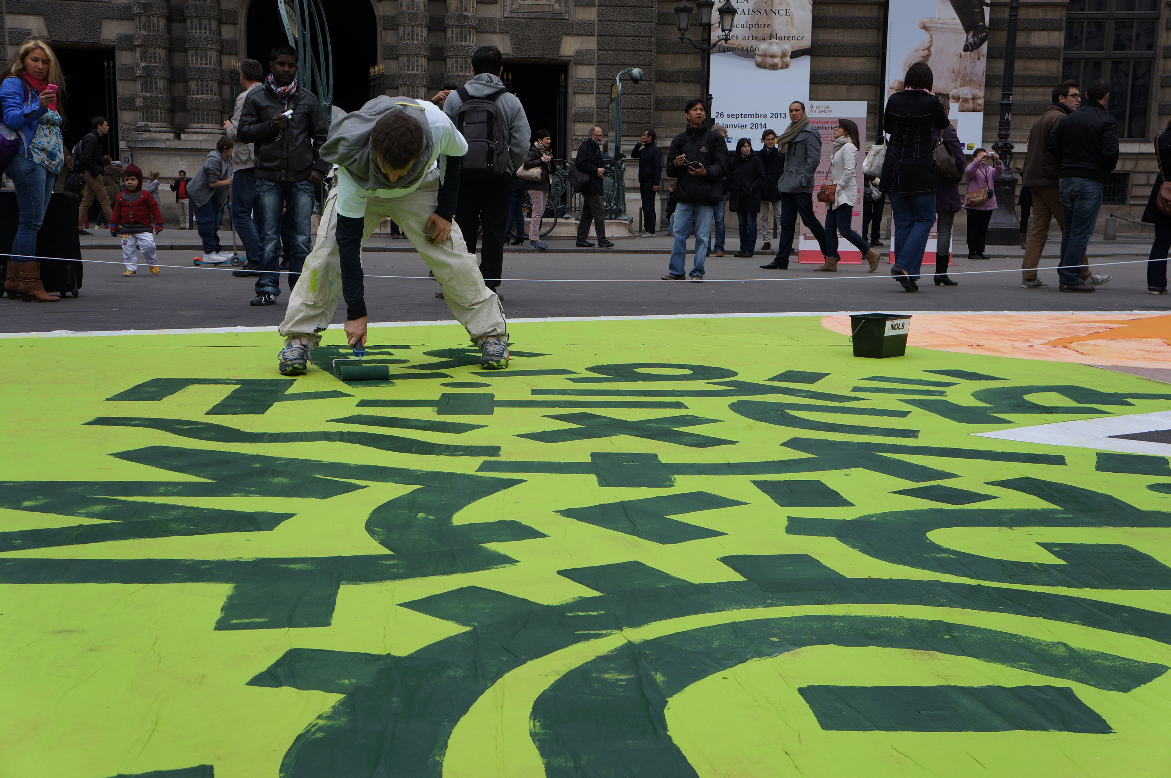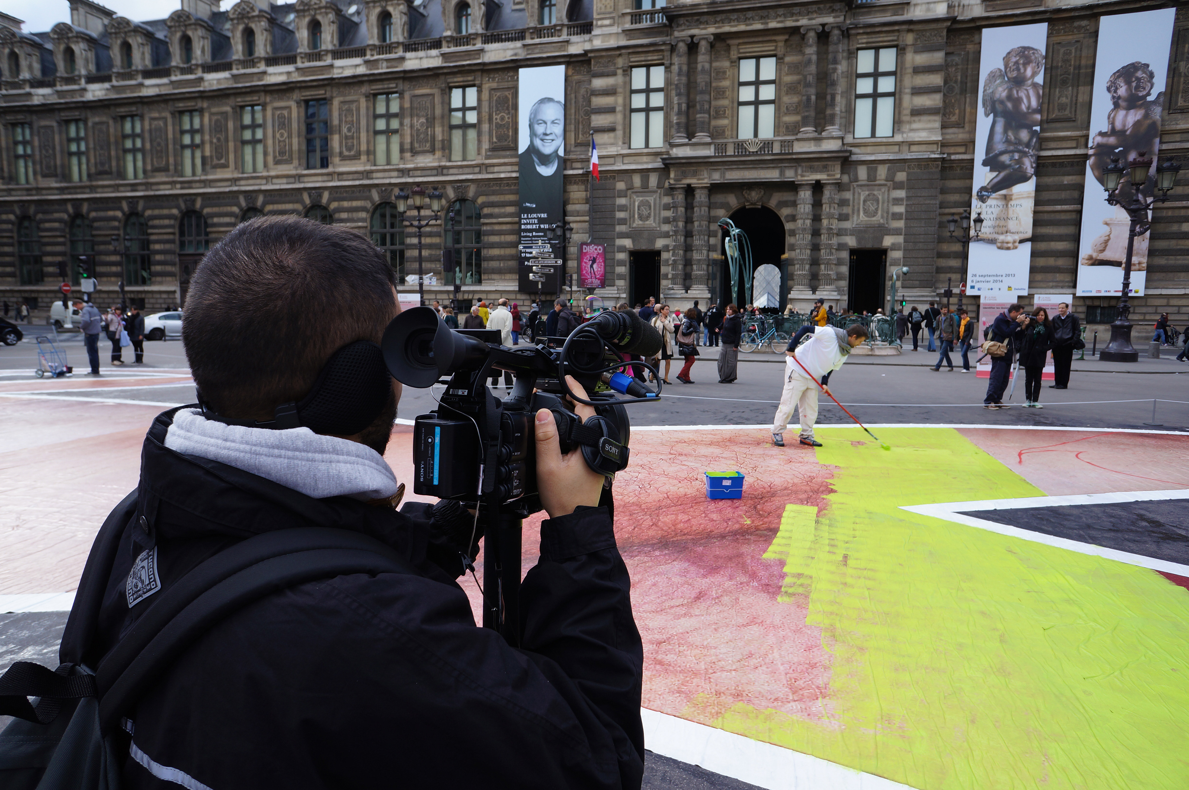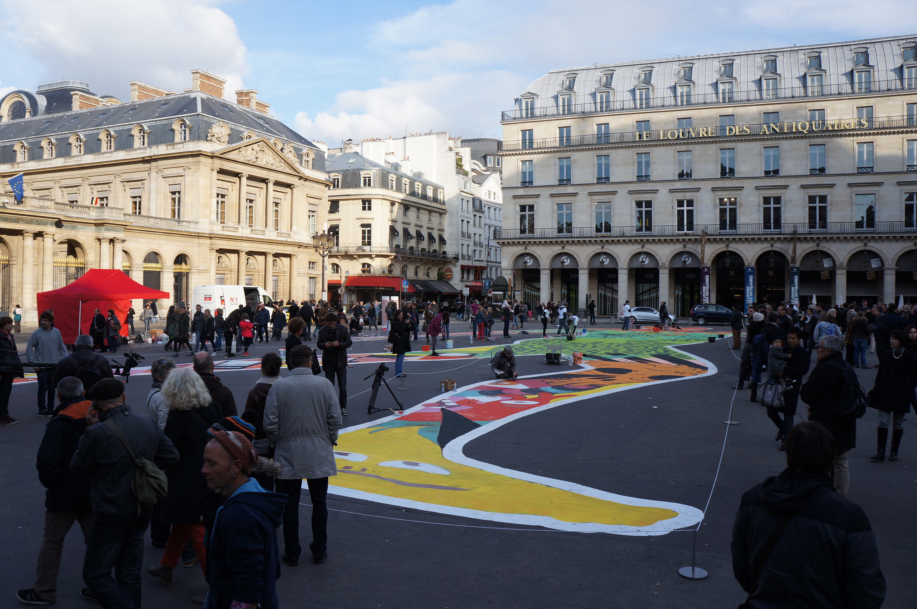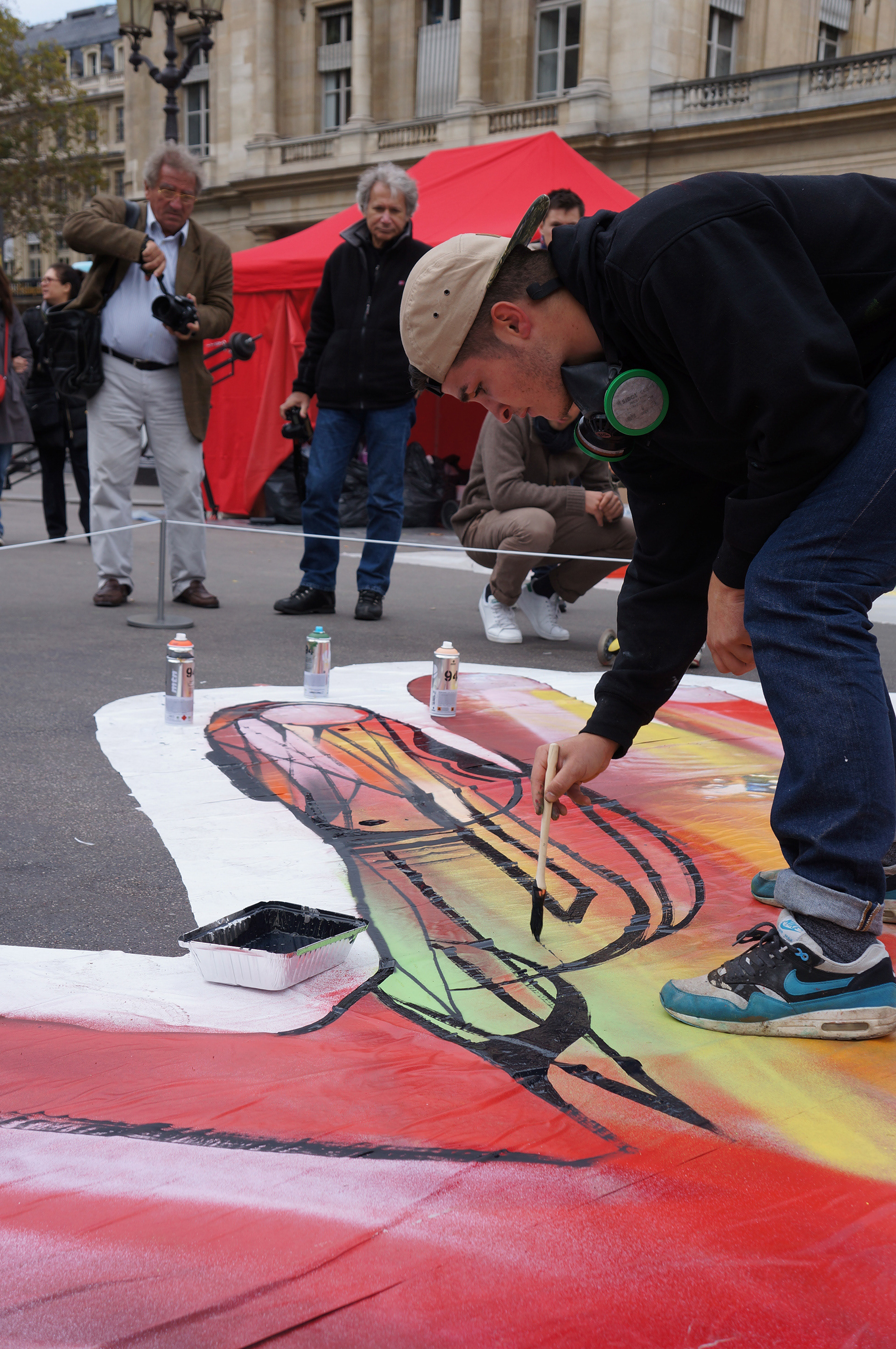 As part of a health prevention action to raise public awareness of an unknown skin disease, a giant figure stuck to the ground from 25 photographs of skin pieces was imagined and made on the Palais Royal Place in Paris. This human body of 750m2 was then customized by 7 street artists according to a chromatic code to create an artistic cartography of the sensitive areas related to the disease.